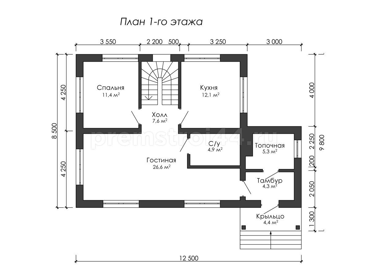 • Высота 1-го этажа — 2,60 м мансарда — 2,50 м